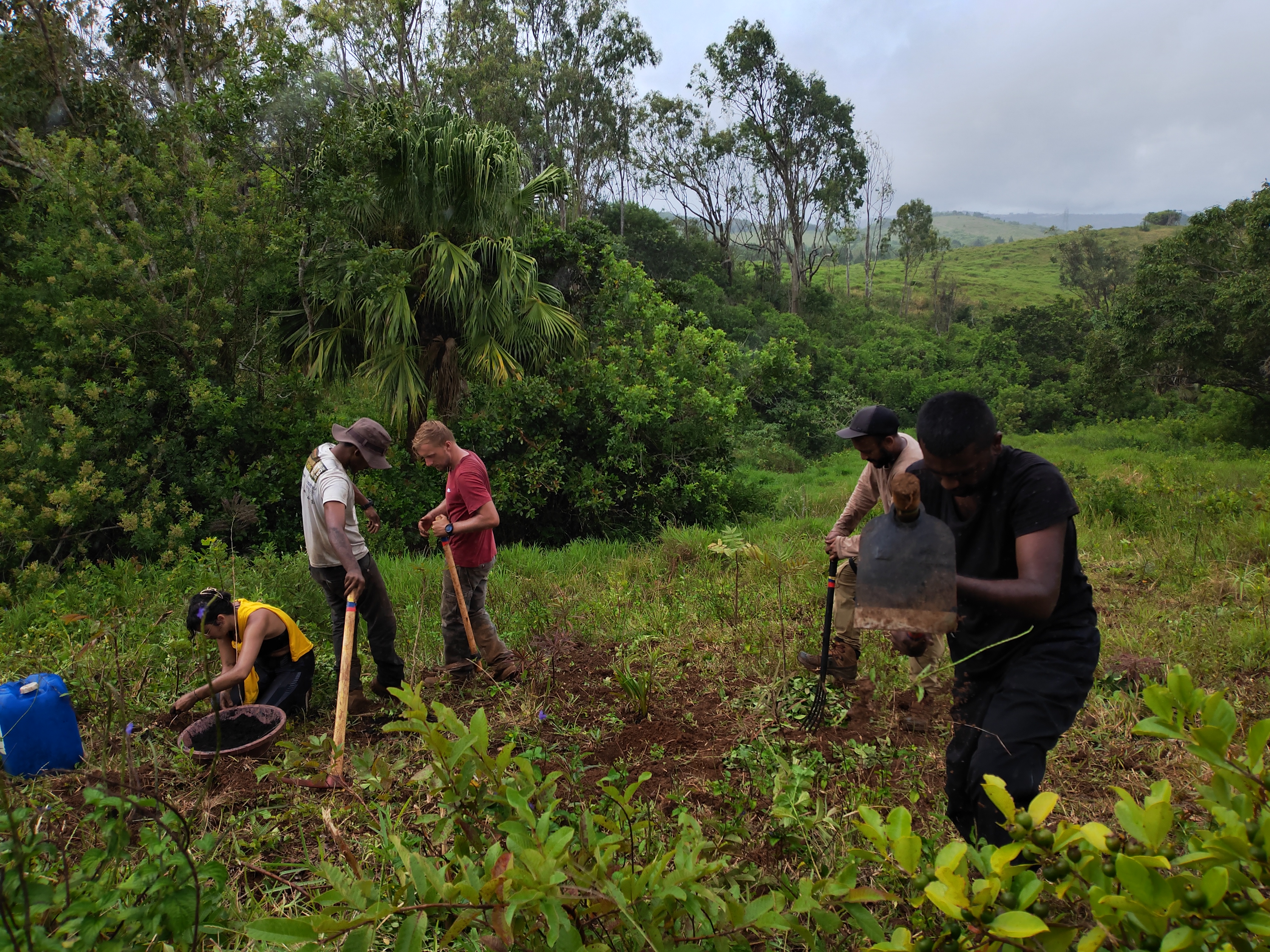 Some 131 seedlings of endemic and native species were put in soil that day regrouping 17 species, namely Acalypha integrifolia, Albizia vaughanii, Barleria observatrix, Cassine orientalis, Coptosperma borbonicum, Dianella ensifolia, Dracaena concinna, Gagnebina pterocarpa, Hibiscus genevii, Ochna mauritiana, Poupartia borbonica, Premna serratifolia, Ruizia boutoniana, Senecio lamarckianus, Syzygium pyneei, Terminalia bentzoe and Zanthoxylum heterophyllum.