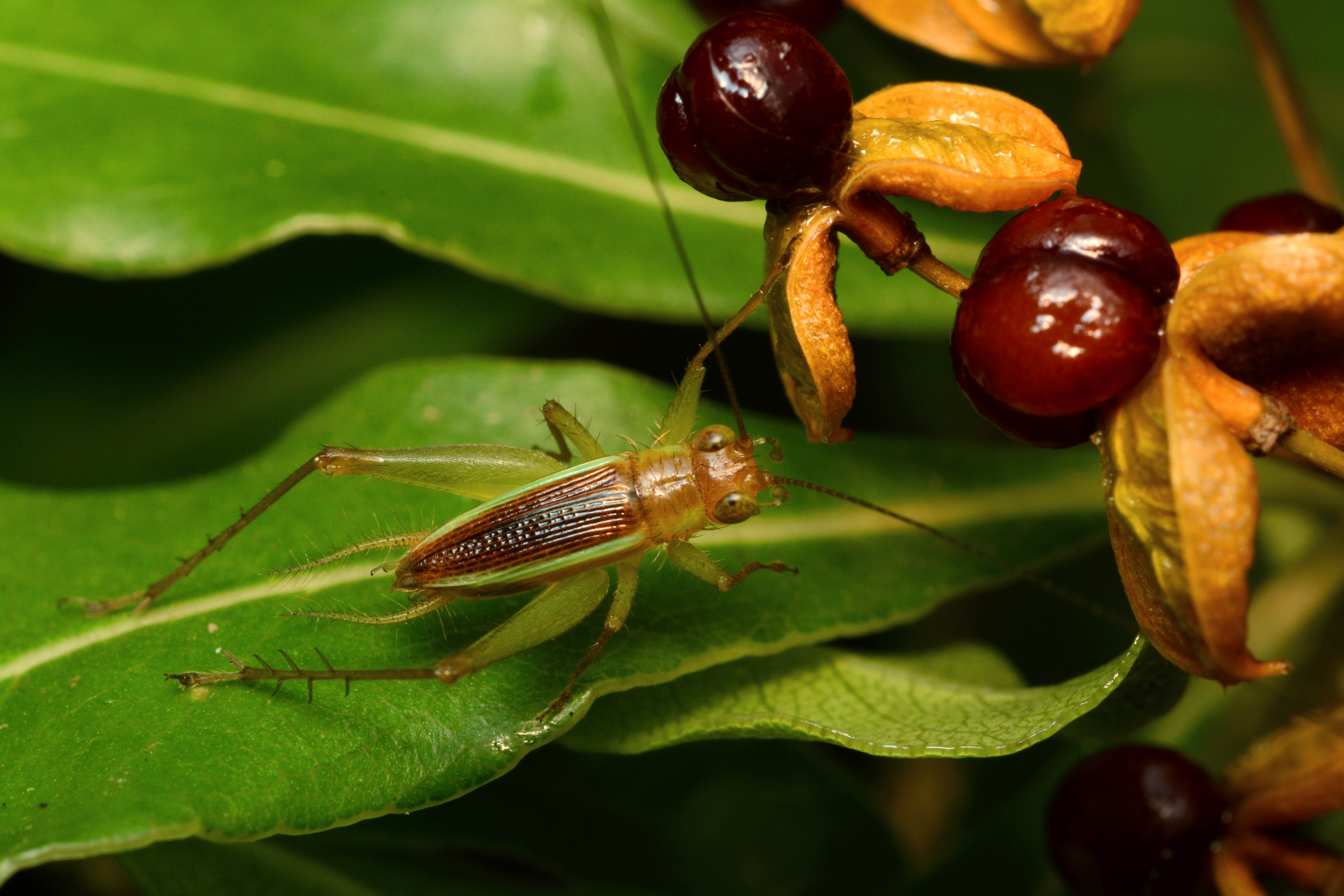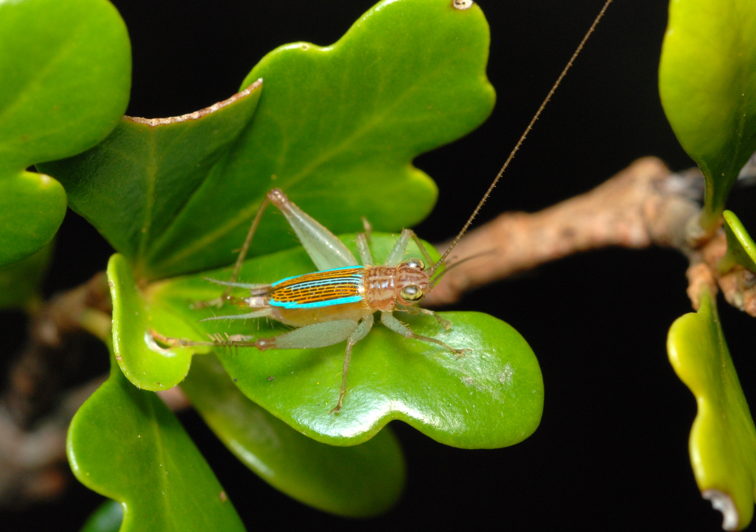 These trees being planted will ultimately densify the forests and form part of the habitats for many fauna species. Today, we wish to let you know more about two of Rodrigues endemic insects, the Metioche (Superstes) superbus and the Metioche (Superstes) payendeei, two cricket species. Both species are 8 cms in length approximately.