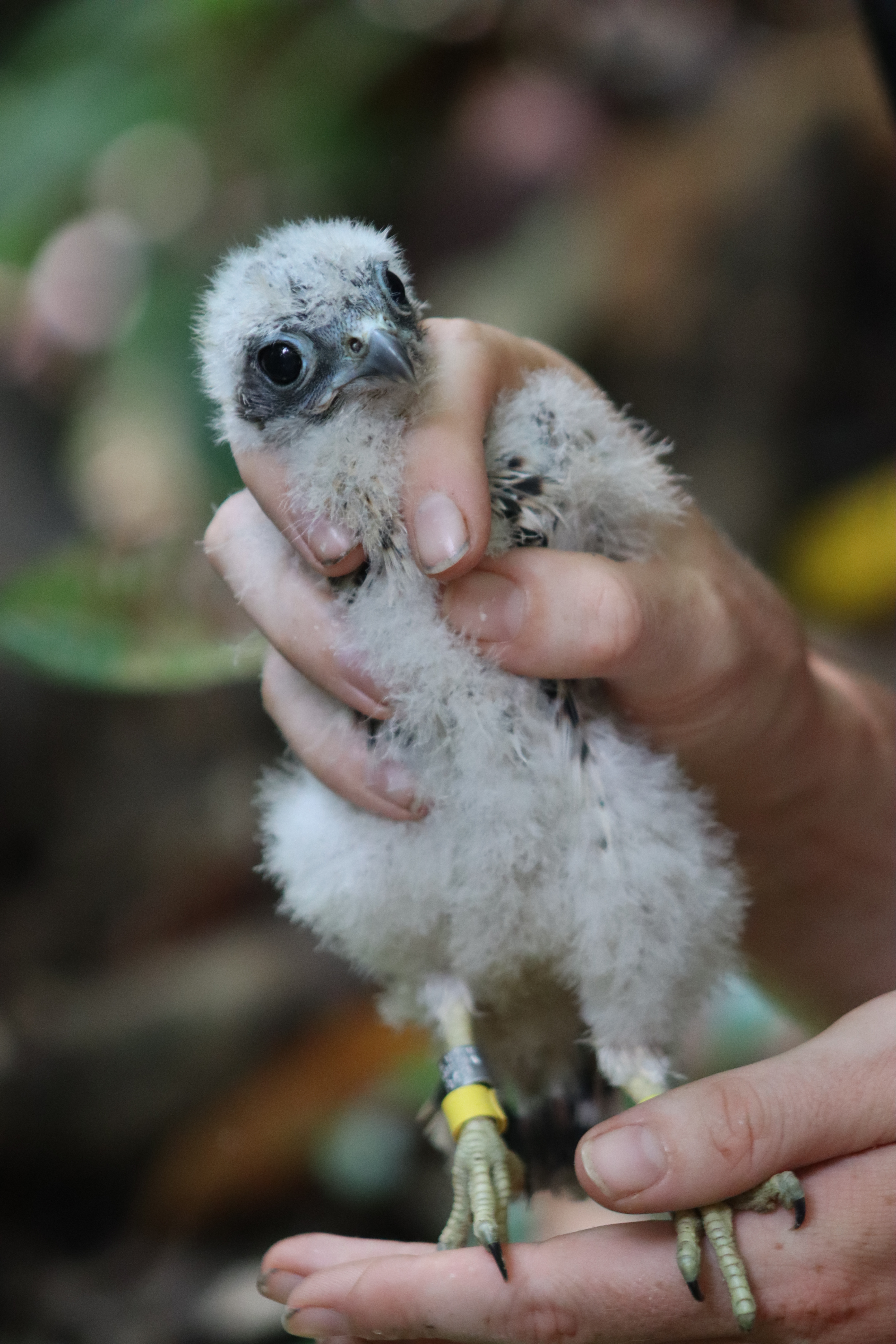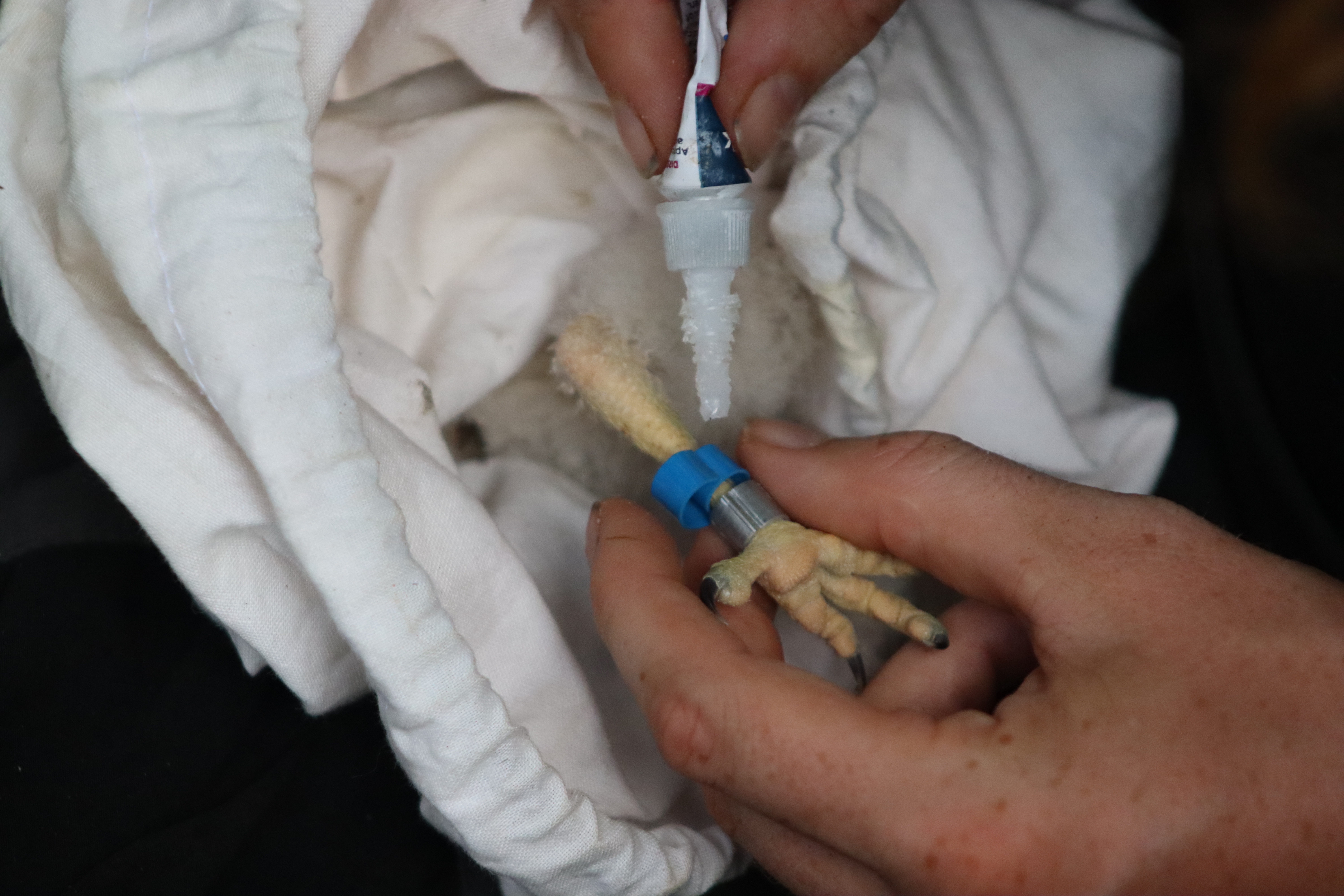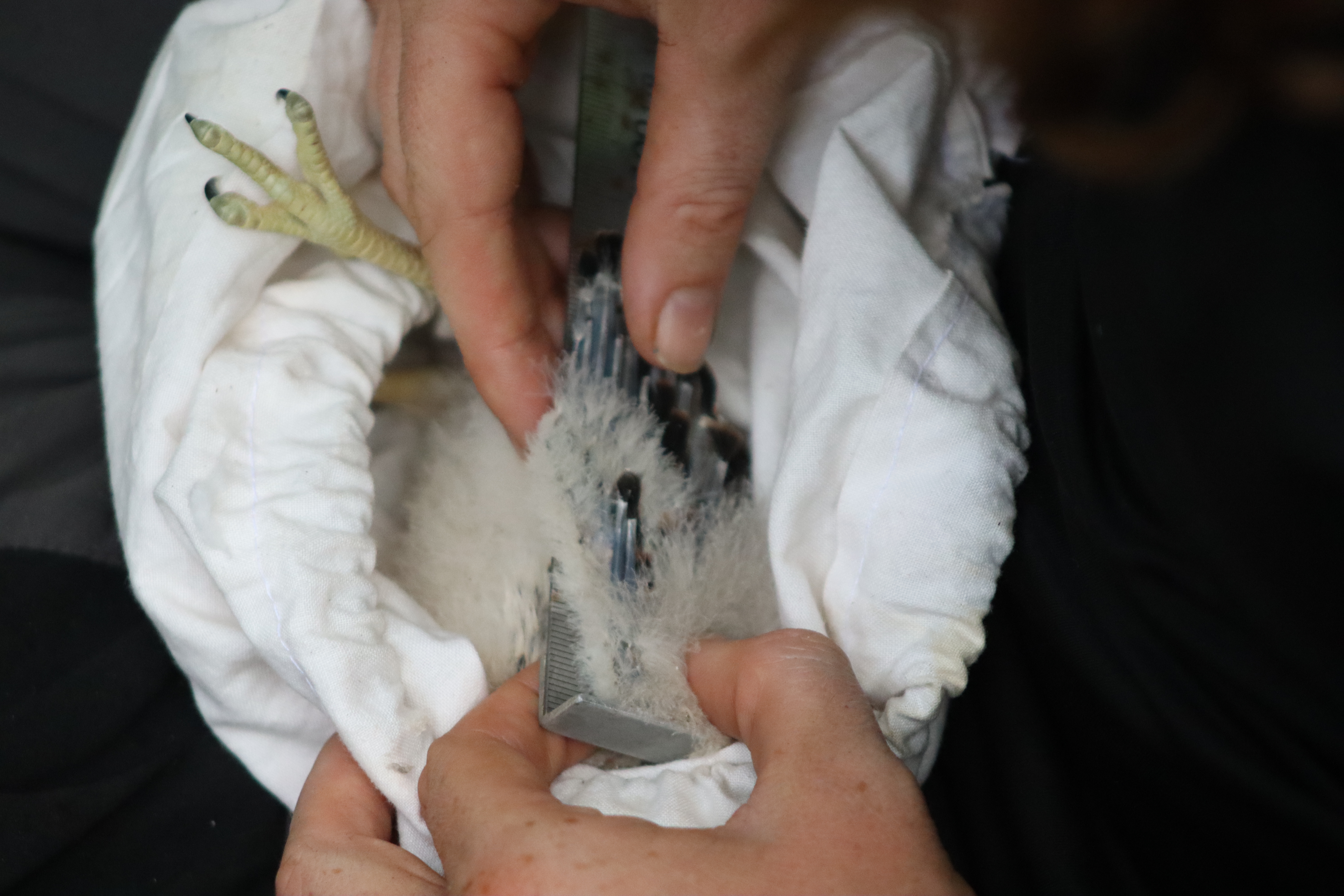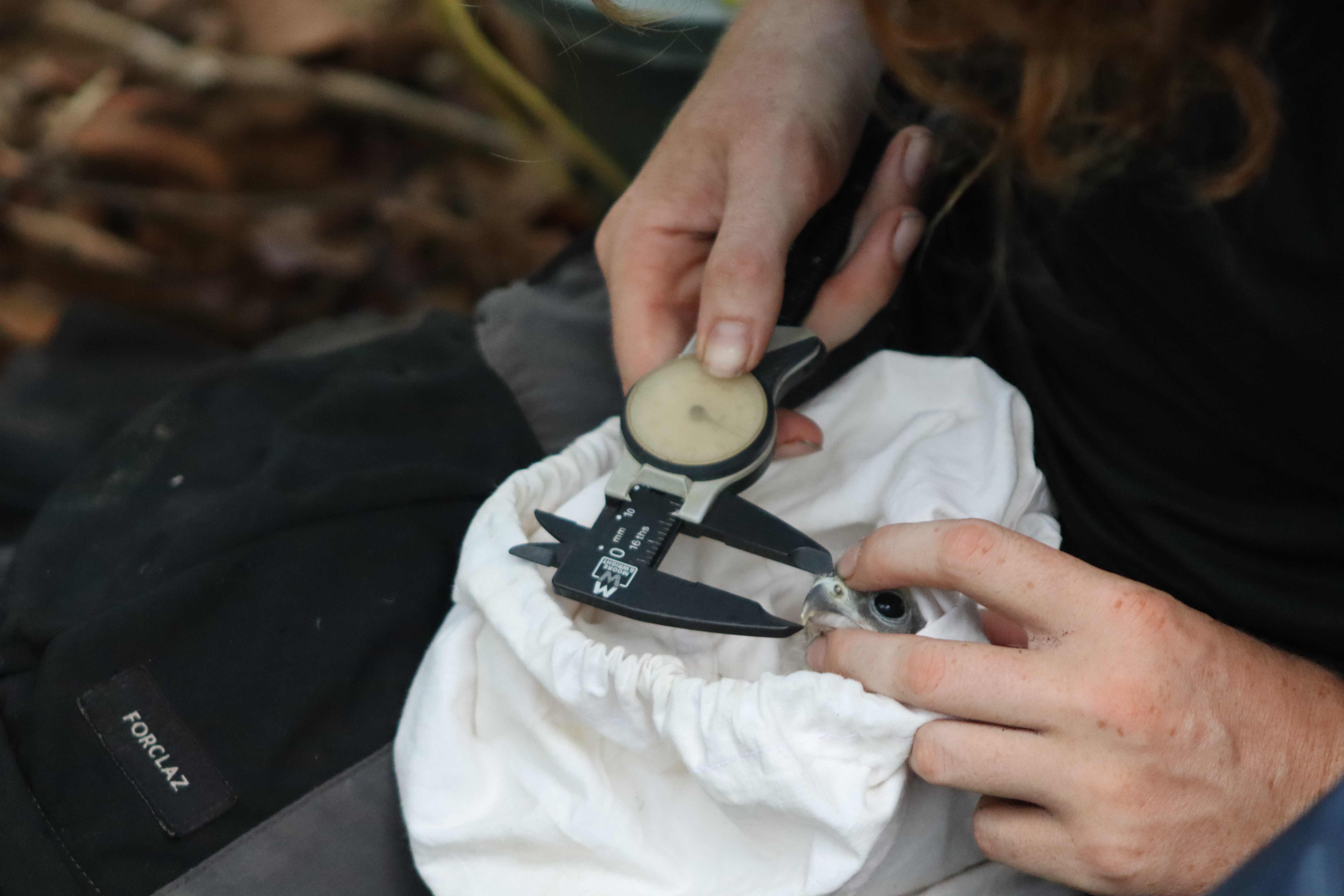 During the fieldwork, the conservation biologists followed a precise process to ensure the well-being of the kestrel chicks while collecting valuable data. The chicks were prudently placed in a soft bag and carefully handled to minimize stress. Each chick received a unique identification set of rings, allowing researchers to track its movements and survival over time. Various physical parameters, such as wing length, tail length and body weight, were recorded to assess growth and development. Blood samples were also collected for genetic and health analyses, providing insights into the overall condition of the kestrel population.